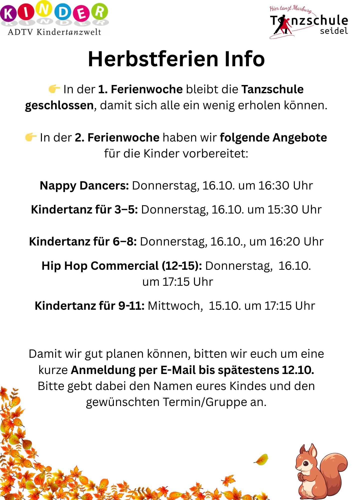 Eine Kindertanzstunde dauert 45 Minuten und findet an Schultagen statt.
